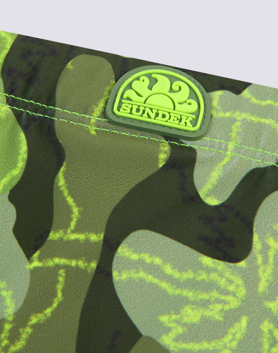 Immerse yourself in the colours of the rainbow. Boy's swimming trunks in camou print. Outside seam length: 6 cm (size 6 years).