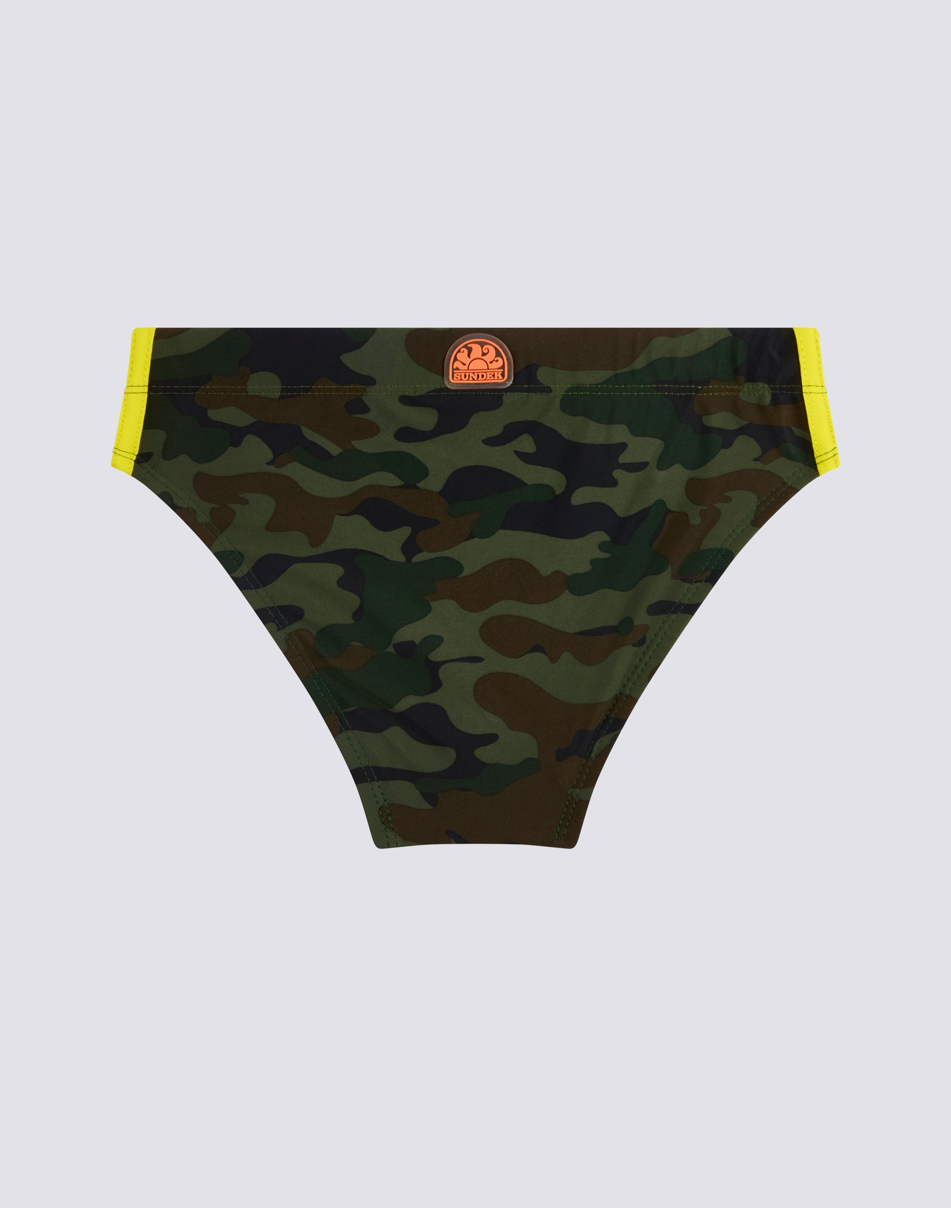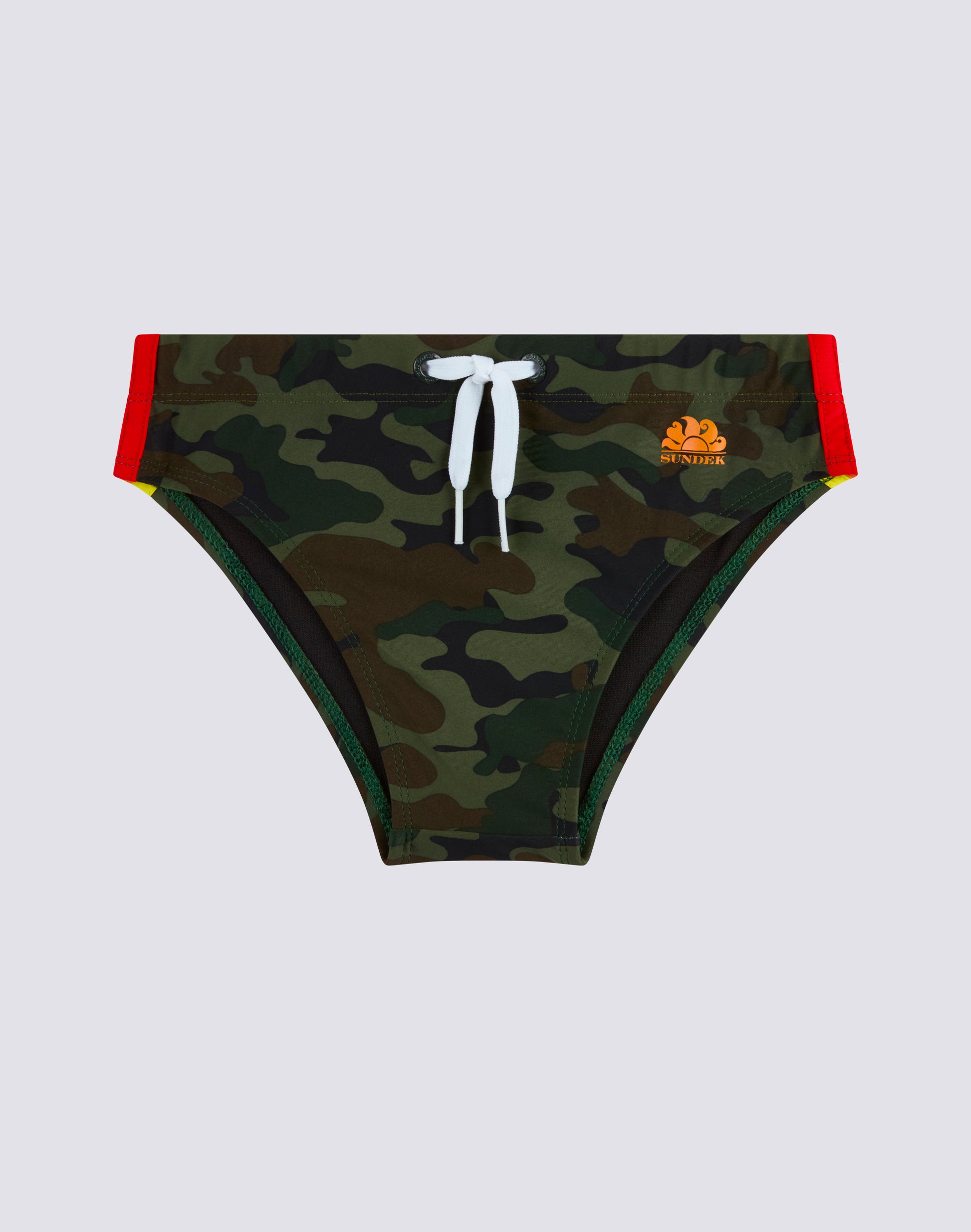 Dive into the colours of the rainbow. Boys' swim briefs in camouflage print. Outer seam length: 6 cm (size 6 years).