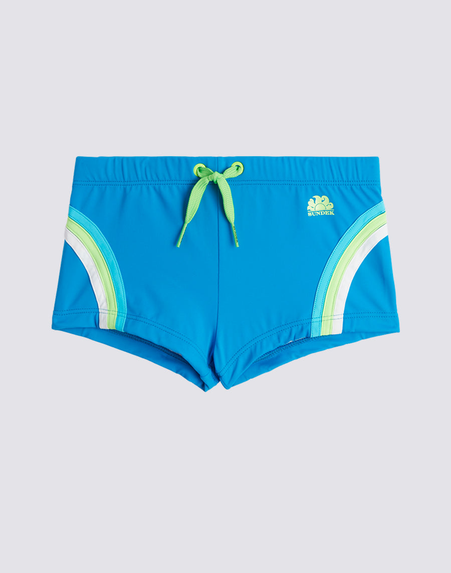 Thanks to their ECONYL® regenerated nylon fabric, these colourful boys' swim boxer put the environment first. With a comfortable elasticated waistband and an adjustable drawstring, this swimsuit is perfect for playing and swimming.
