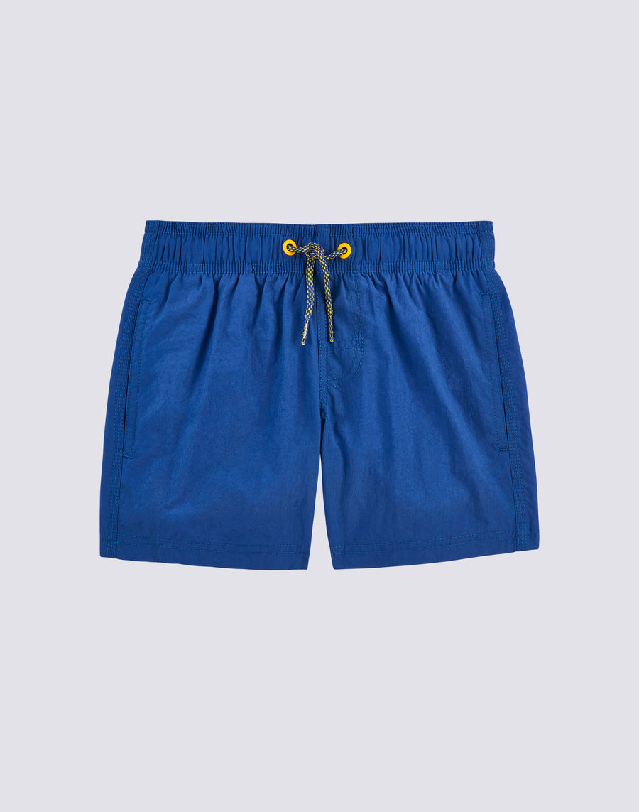 Intense color and hyper-comfortable, quick-drying fabric for these boys' swim shorts. A model that will accompany your child in his thousand holiday activities, perfect for moving and playing in complete freedom. it's made from our heritage nylon-taffeta fabric and constructed with three-needle stitching that makes it durable over time. To pack in your suitcase, year after year.