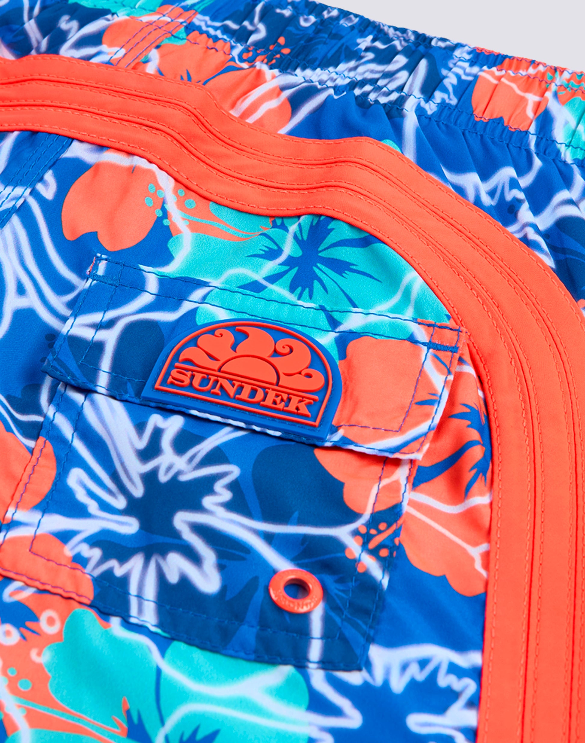 REPREVE® ELASTICATED WAIST SHORT SWIMSHORTS WITH INSIDE FLOWERS PRINT