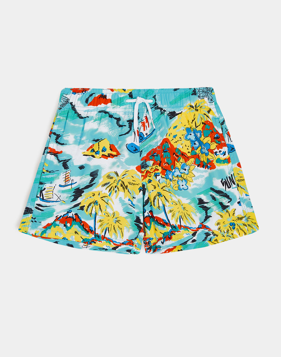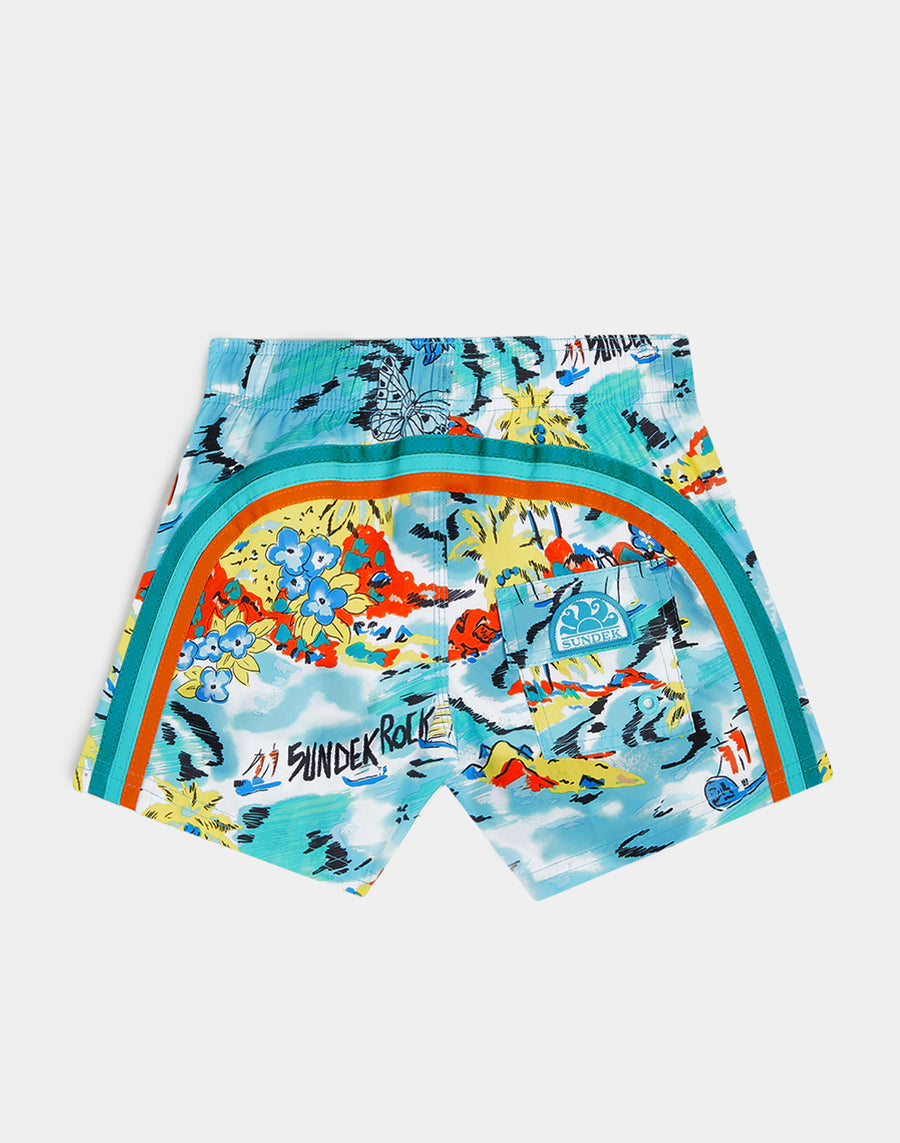 Intense color and hyper-comfortable quick-drying fabric for these baby boy beach shorts. A model that will accompany your baby in his many activities on vacation, perfect for moving and playing in complete freedom. Made of recycled REPREVE® fabric from reused plastic bottles, this swimsuit is lightweight, durable and dries quickly.