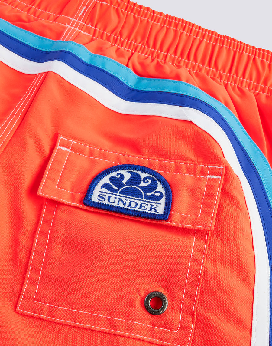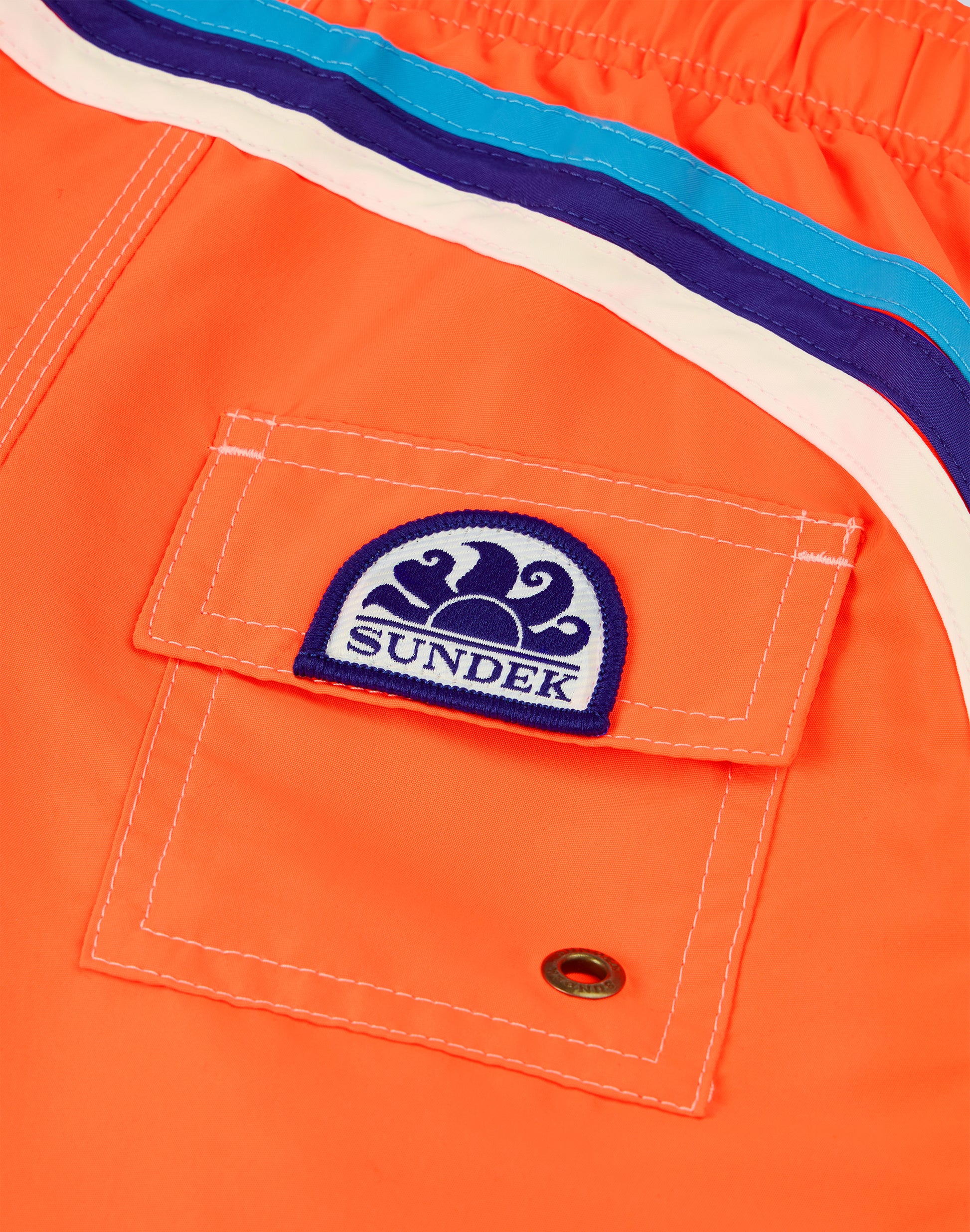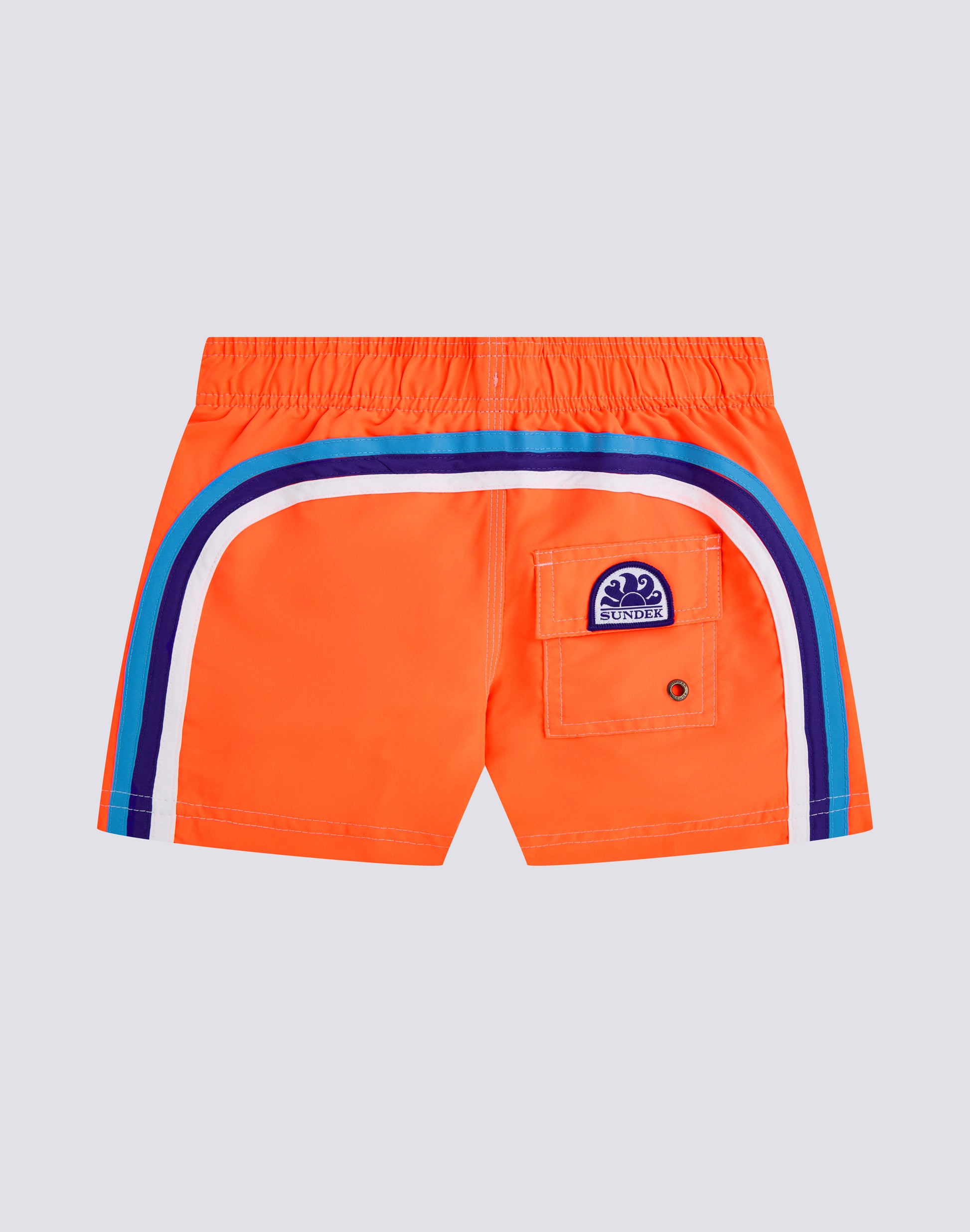 Intense color and hyper-comfortable quick-drying fabric for these baby boy beach shorts. A model that will accompany your child in his many activities on vacation, perfect for moving and playing in complete freedom. is made of our historic nylon-taffeta fabric and constructed with three-needle stitching that makes it durable over time. To pack year after year.