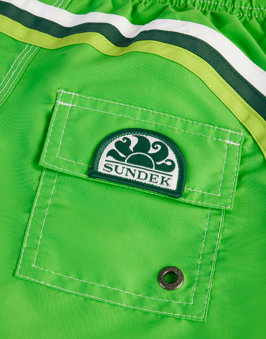 100% POLYAMIDE Our historic nylon-taffeta fabric is a champion of performance because it dries quickly, is resistant and does not deteriorate over time, keeping its color and appearance unchanged.