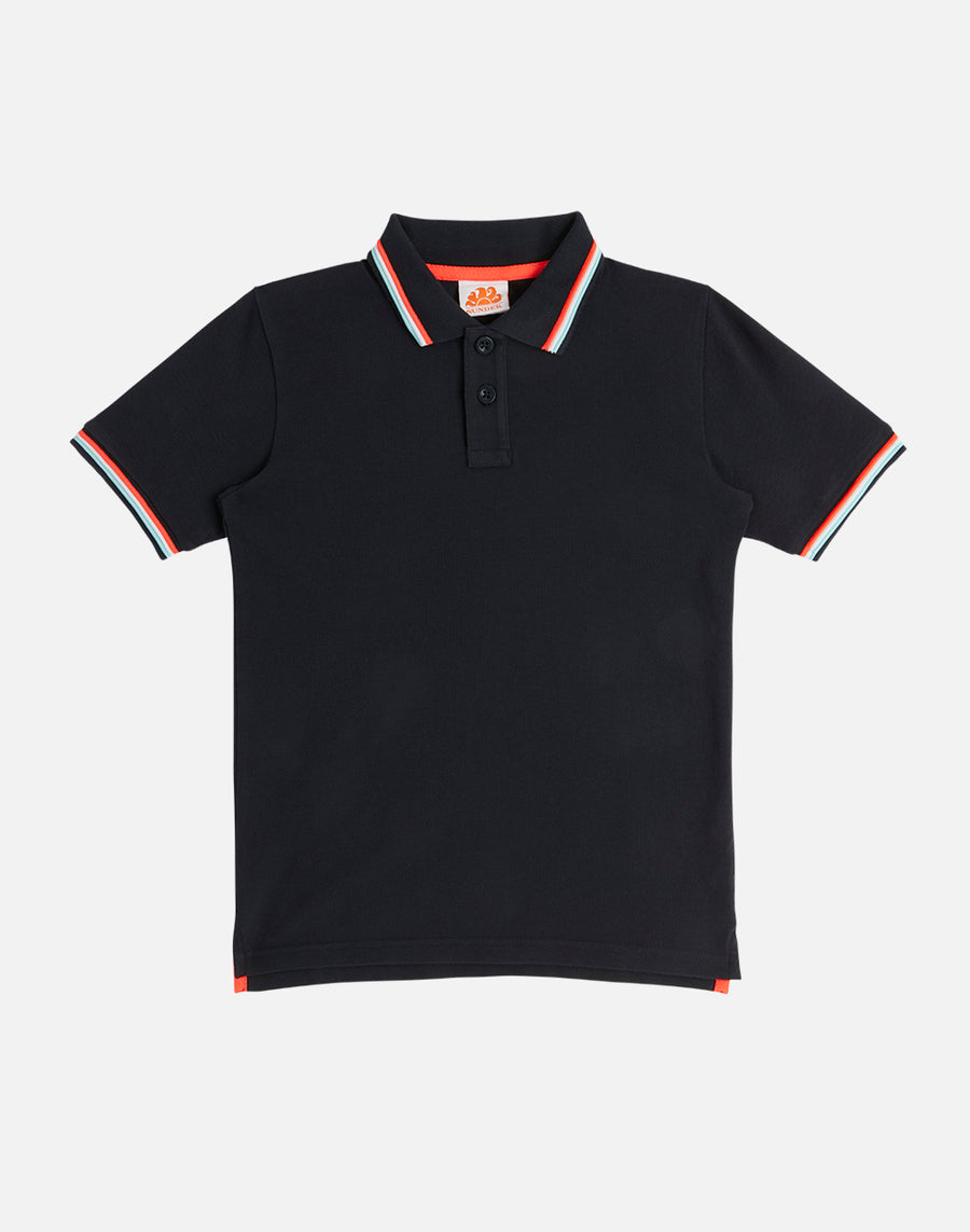 An elegant and charming polo shirt in comfortable soft cotton piqué: a must-have addition to every kid's wardrobe, it is perfect for countless occasions. Made from plain soft cotton piqué fabric, the timeless design is finished with tricolour trim for an extra touch of character.