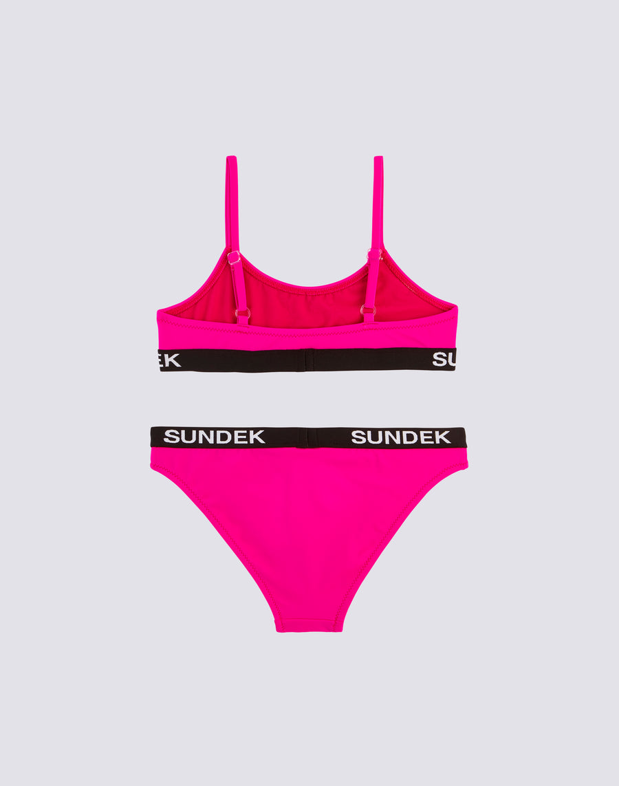 Made up of a bandeau top and briefs with an elasticated waistband, this girls' bikini is finished with a contrasting logo. The sustainable, soft and strong fabric is ready for a thousand swims and games on the beach.