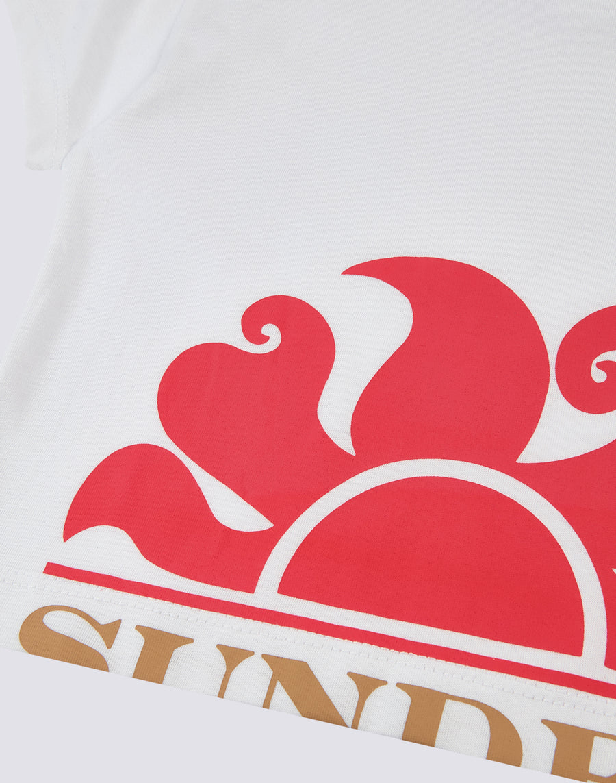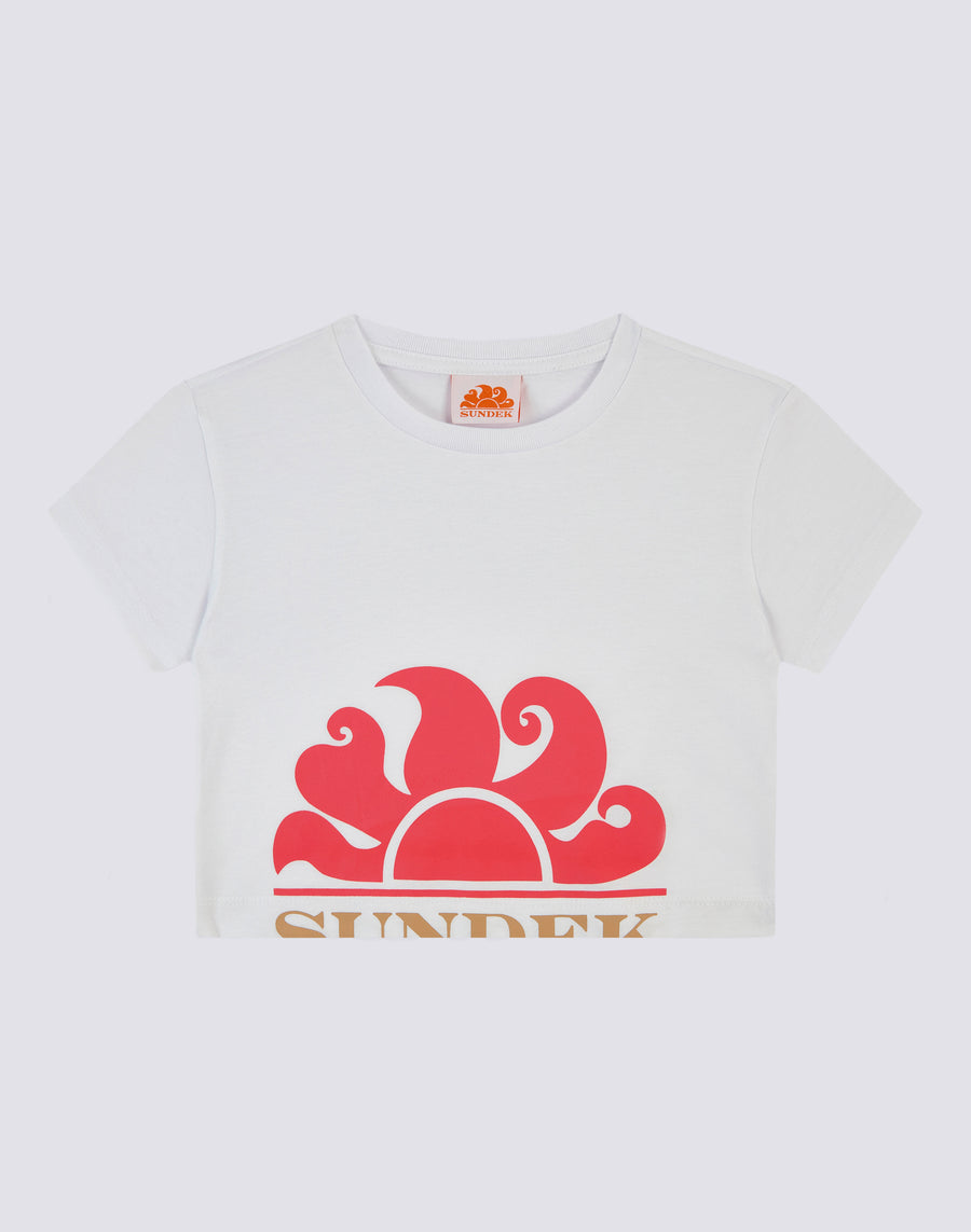 Girl's crop T-shirt to wear over jeans or skirts. A must-have model for your little girl's wardrobe.