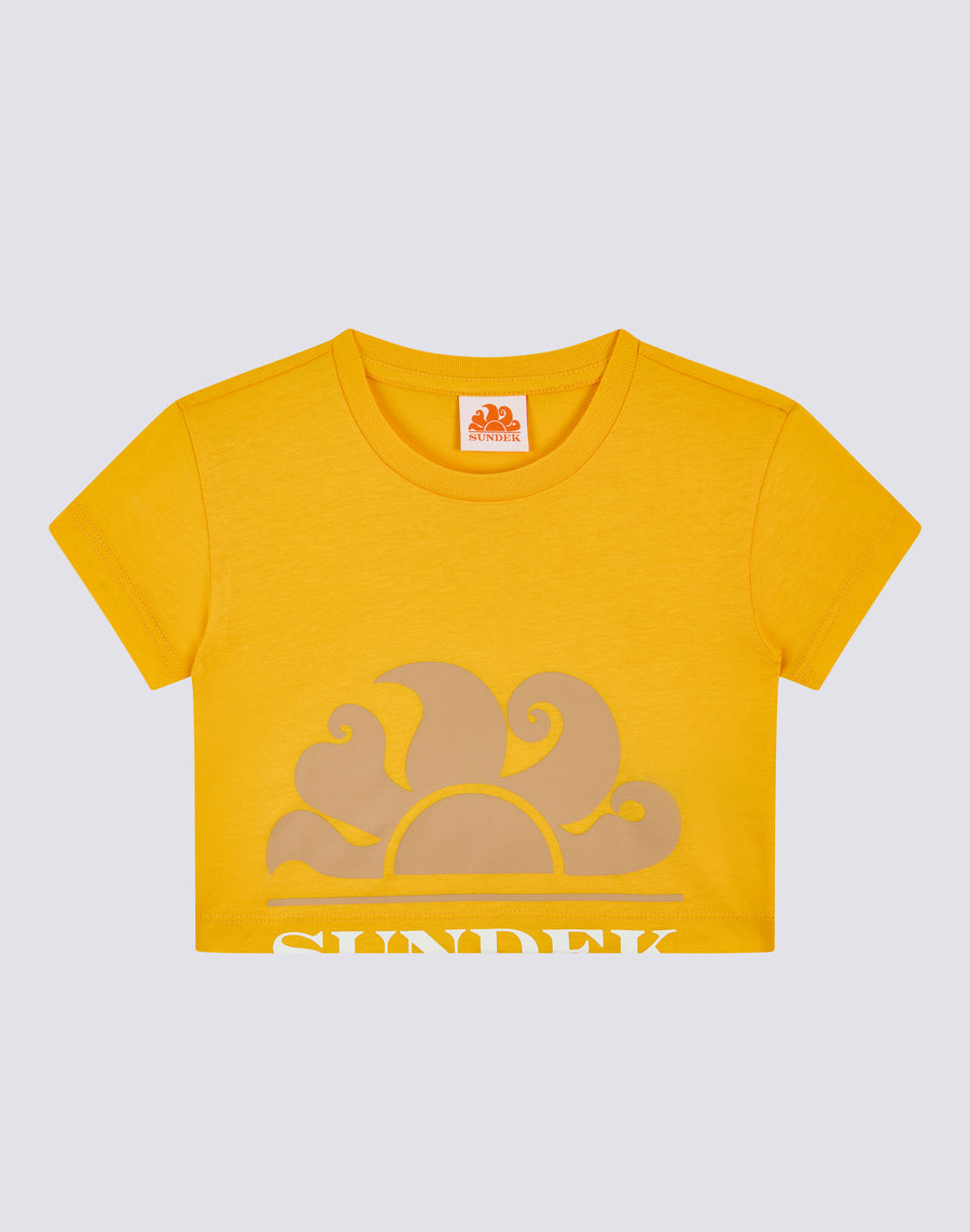 Girl's crop T-shirt to wear over jeans or skirts. A must-have model for your little girl's wardrobe.