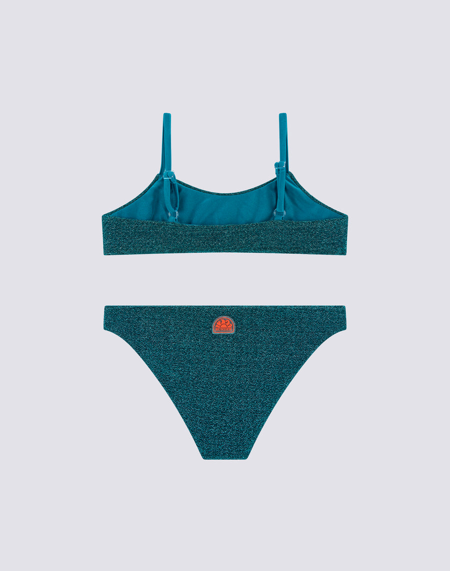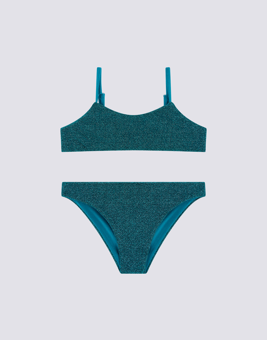 64% PA 36% EA Shiny lurex fabric, comfortable and with lining that guarantees a soft contact with the skin.