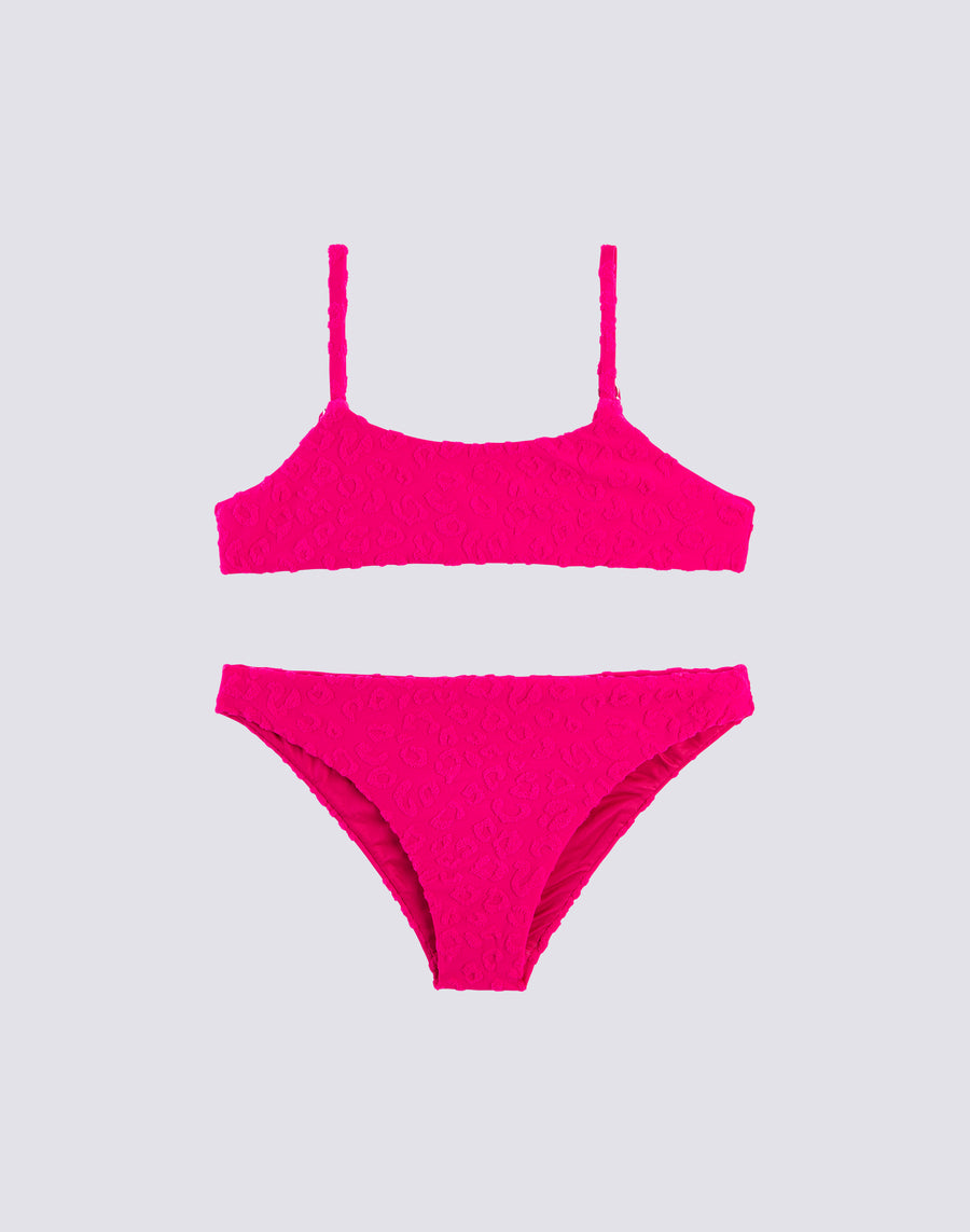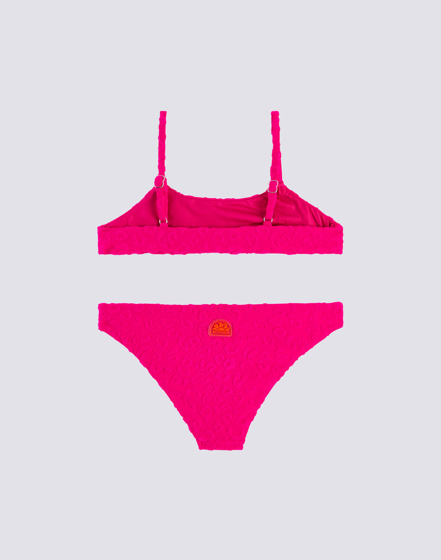 Let yourself be inspired by the beautiful bandeau swimsuit for girls with leopard-print terry bottoms. Made with quality materials, the bandeau top offers a comfortable and secure fit for a unique and fashionable look. Perfect for days at the beach or pool.