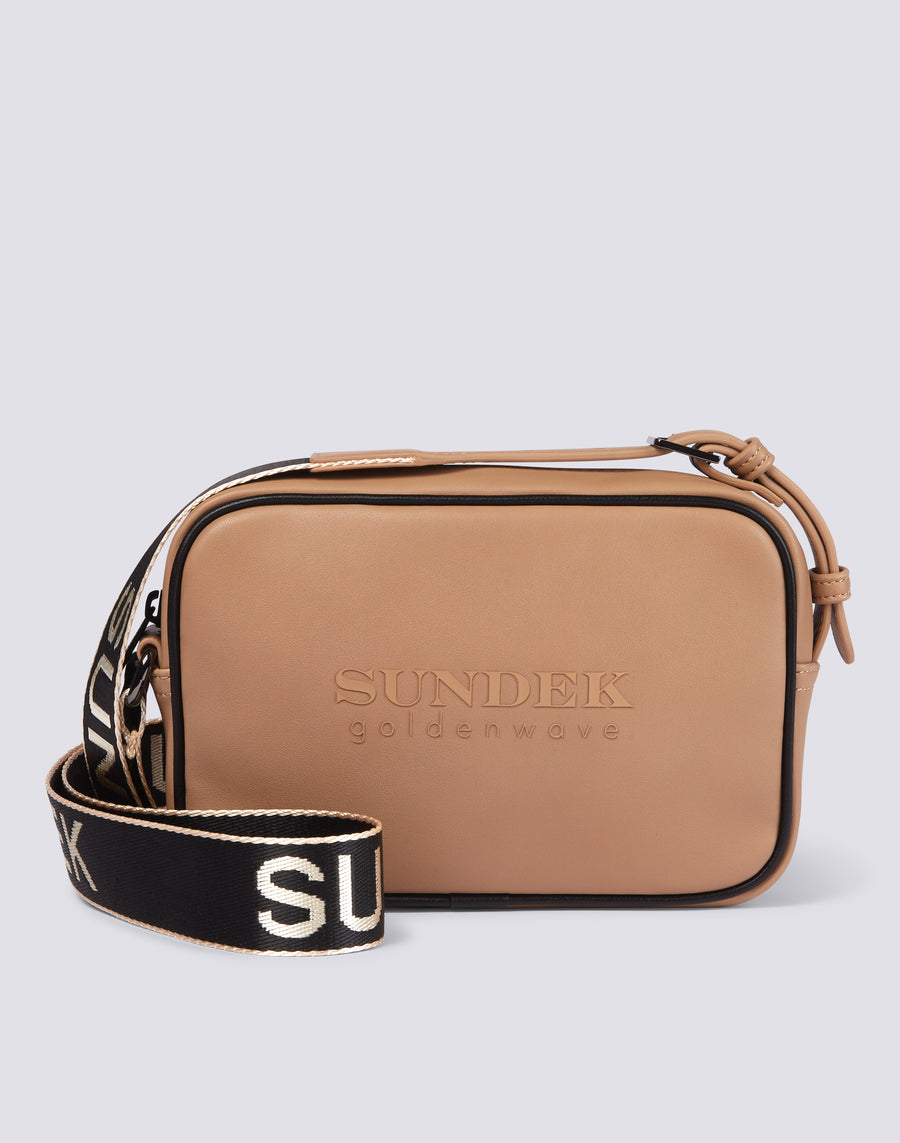 Your seasonal wardrobe can't be without a versatile and characterful camera bag, in perfect Sundek style. Perfect if you are always on the move and want to carry your essentials with style and practicality. In imitation leather with Sundek Goldenwave writing on the front. Measurements 21X14X5,5 cm.