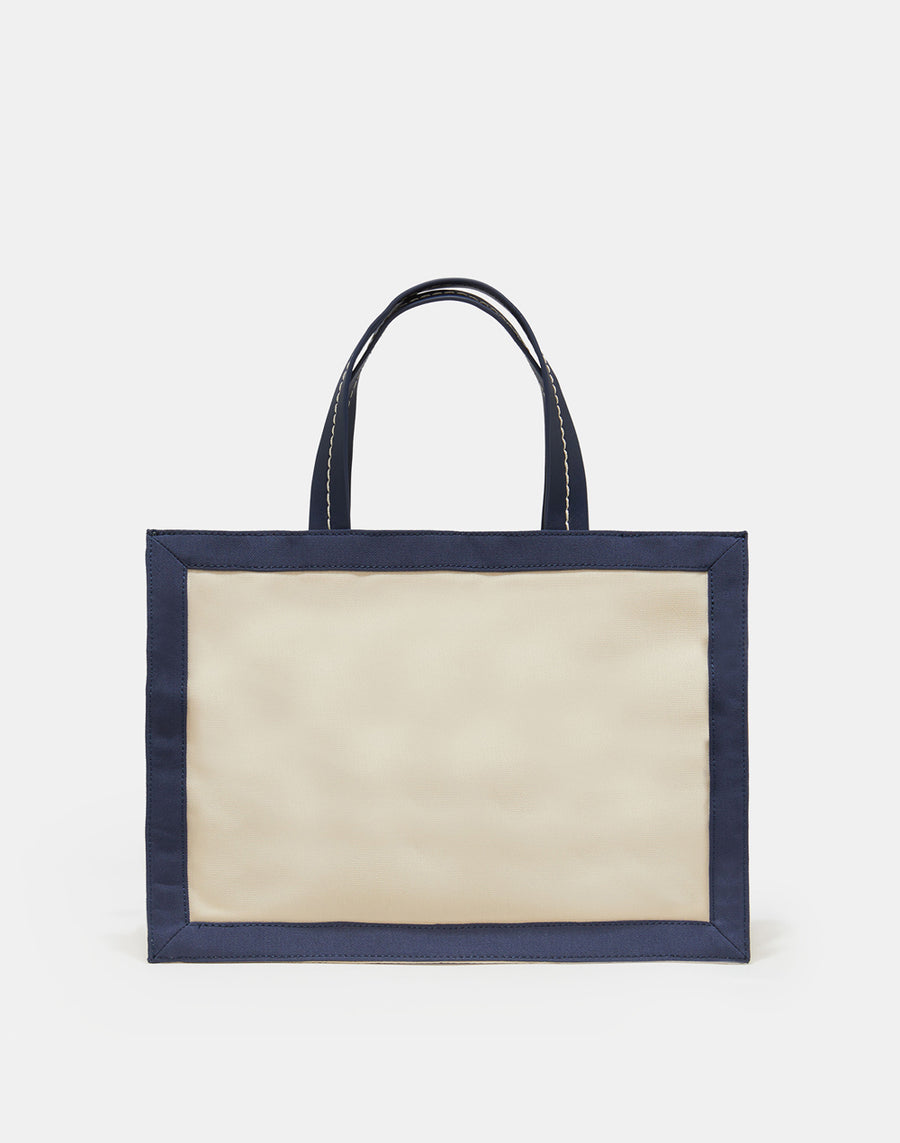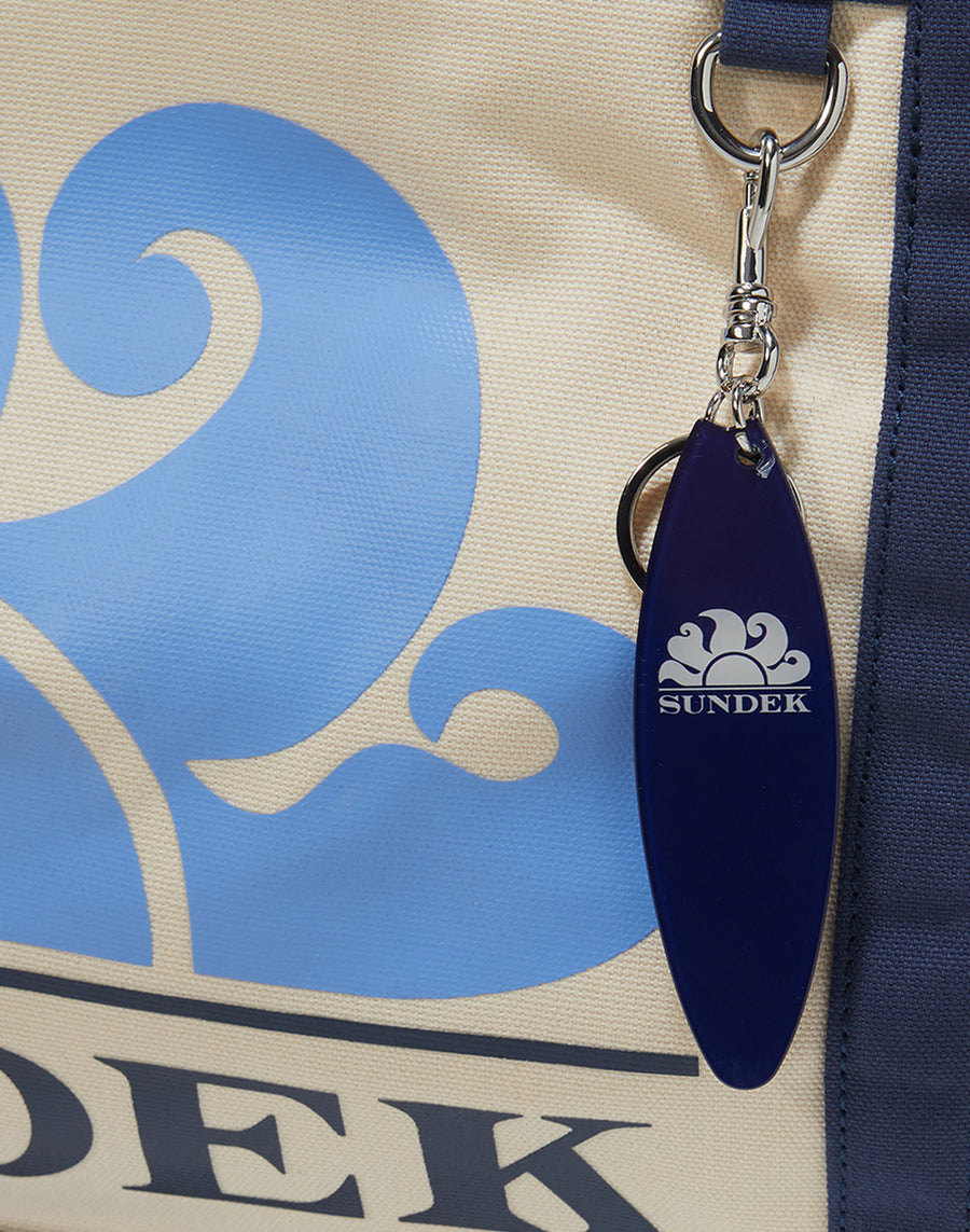Medium canvas handbag with a printed Sundek logo. Iconic surfboard charm