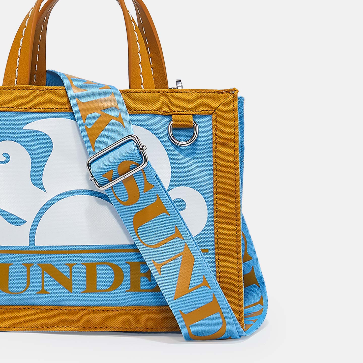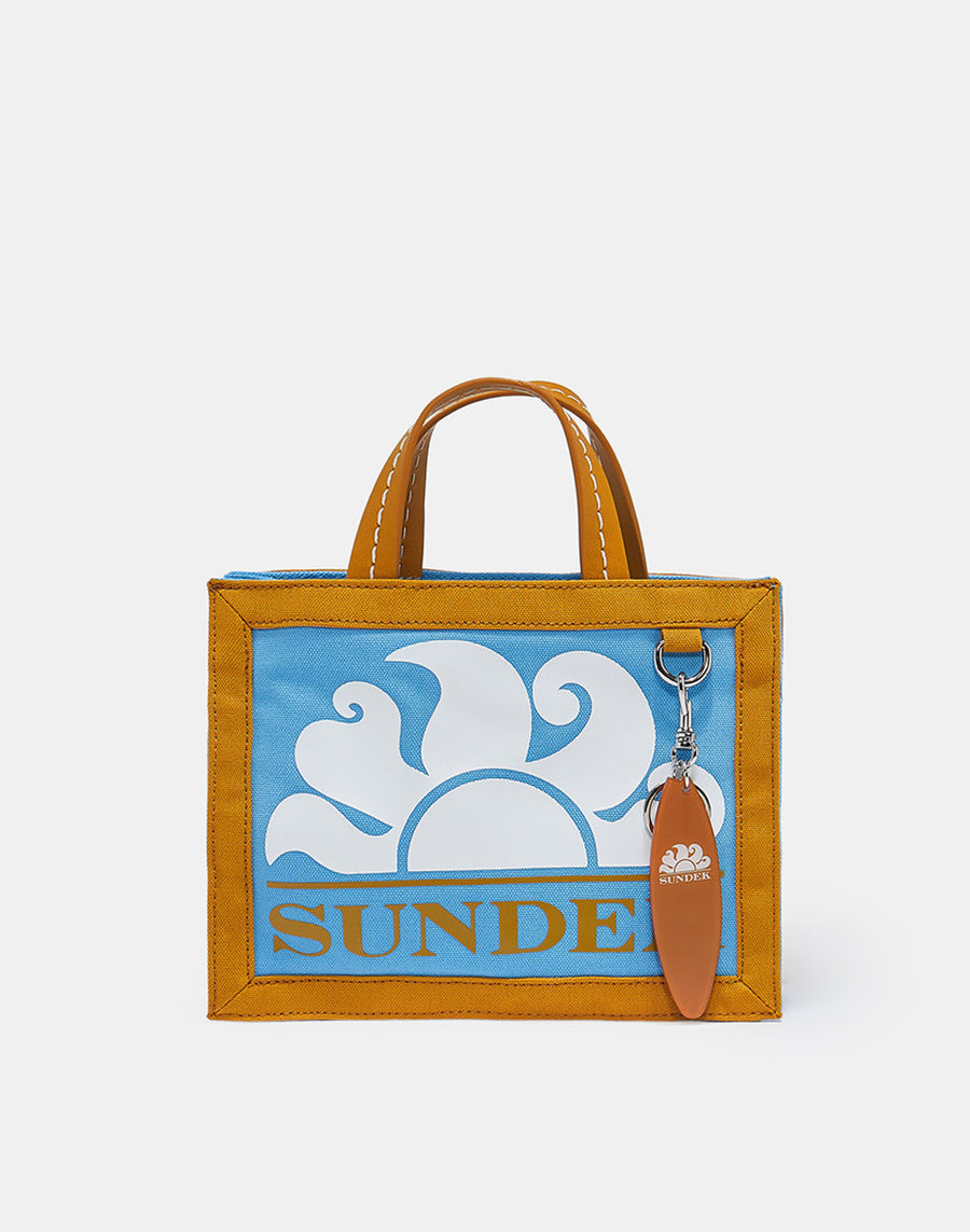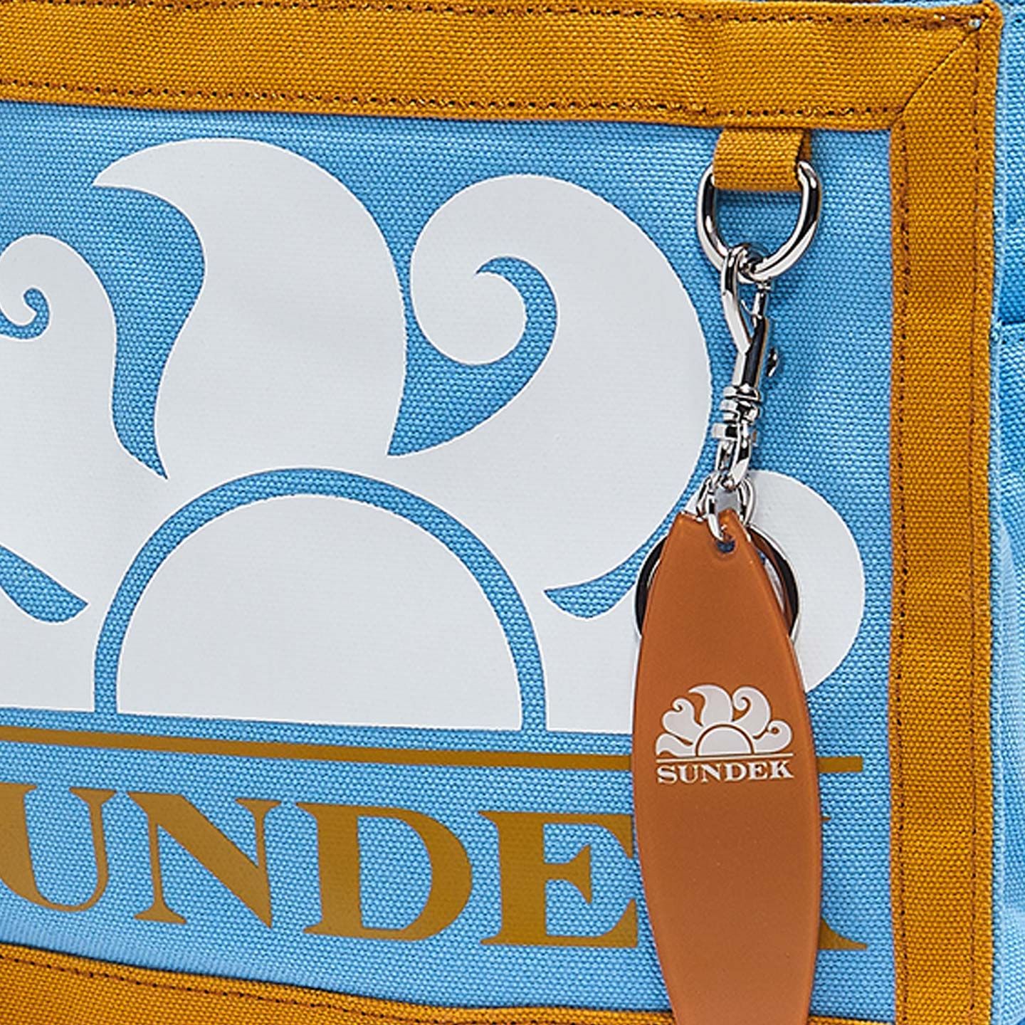 Small bag designed to carry by hand or across the body. Made from canvas with a printed logo and detachable crossbody strap. Iconic surfboard charm inspired by the history of Sundek