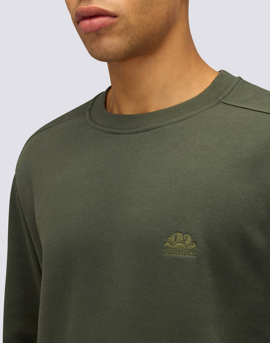Men's crewneck sweatshirt in brushed cotton with tone-on-tone embroidered Sundek logo. Relaxed fit.