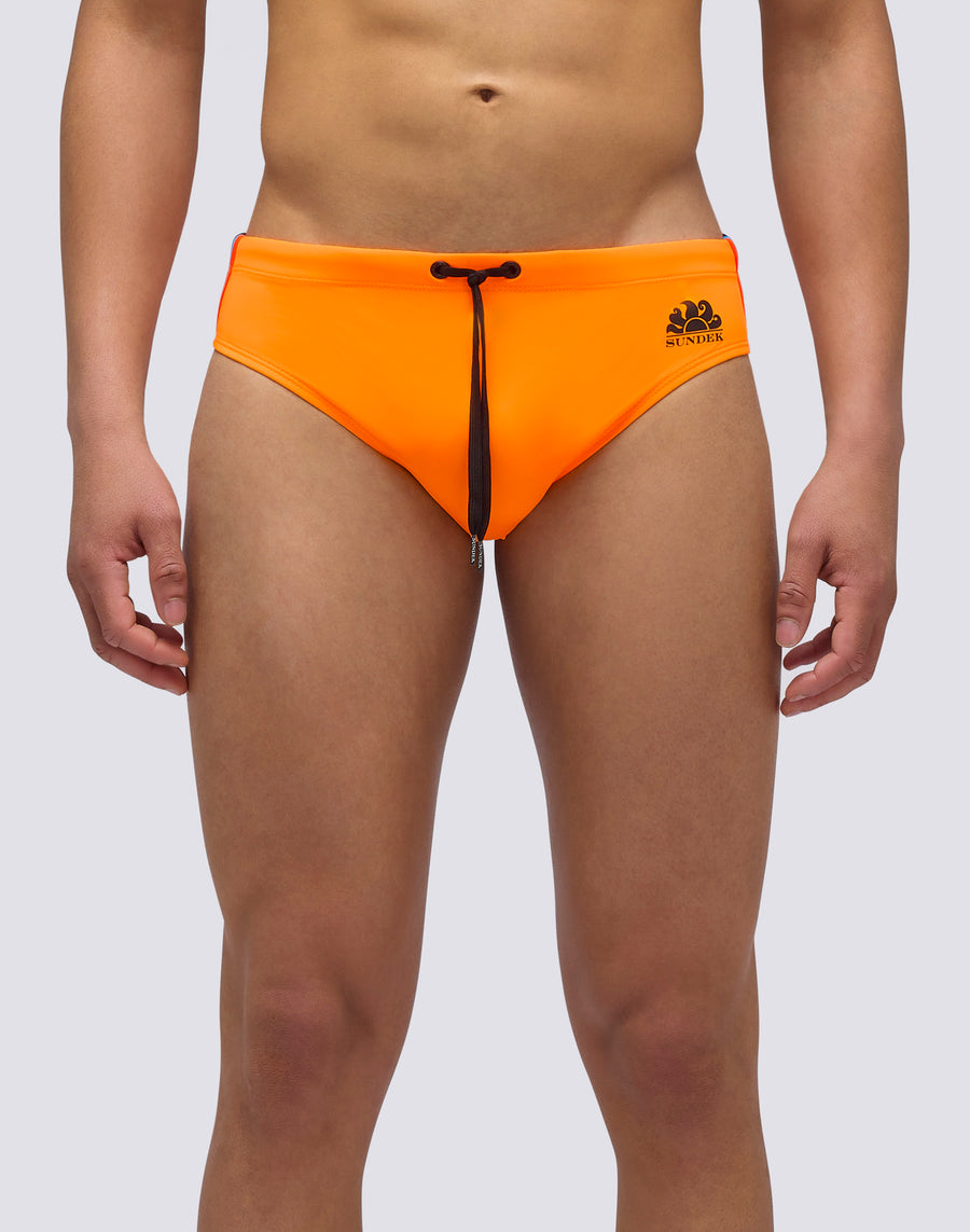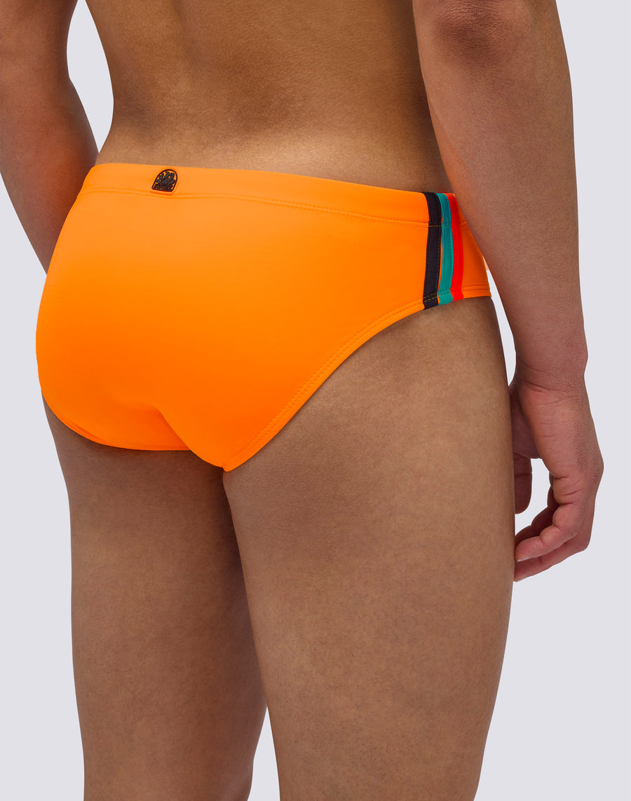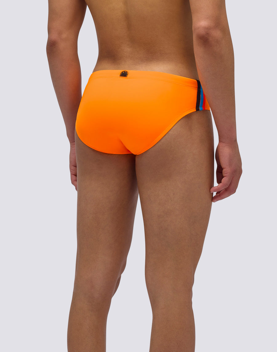 Men's plain briefs with an adjustable waistband Monochrome swim briefs with a drawstring and three contrasting stripes down the sides, combining bold style with functionality. Designed to dry quickly, they ensure comfort and durability in and out of the water.