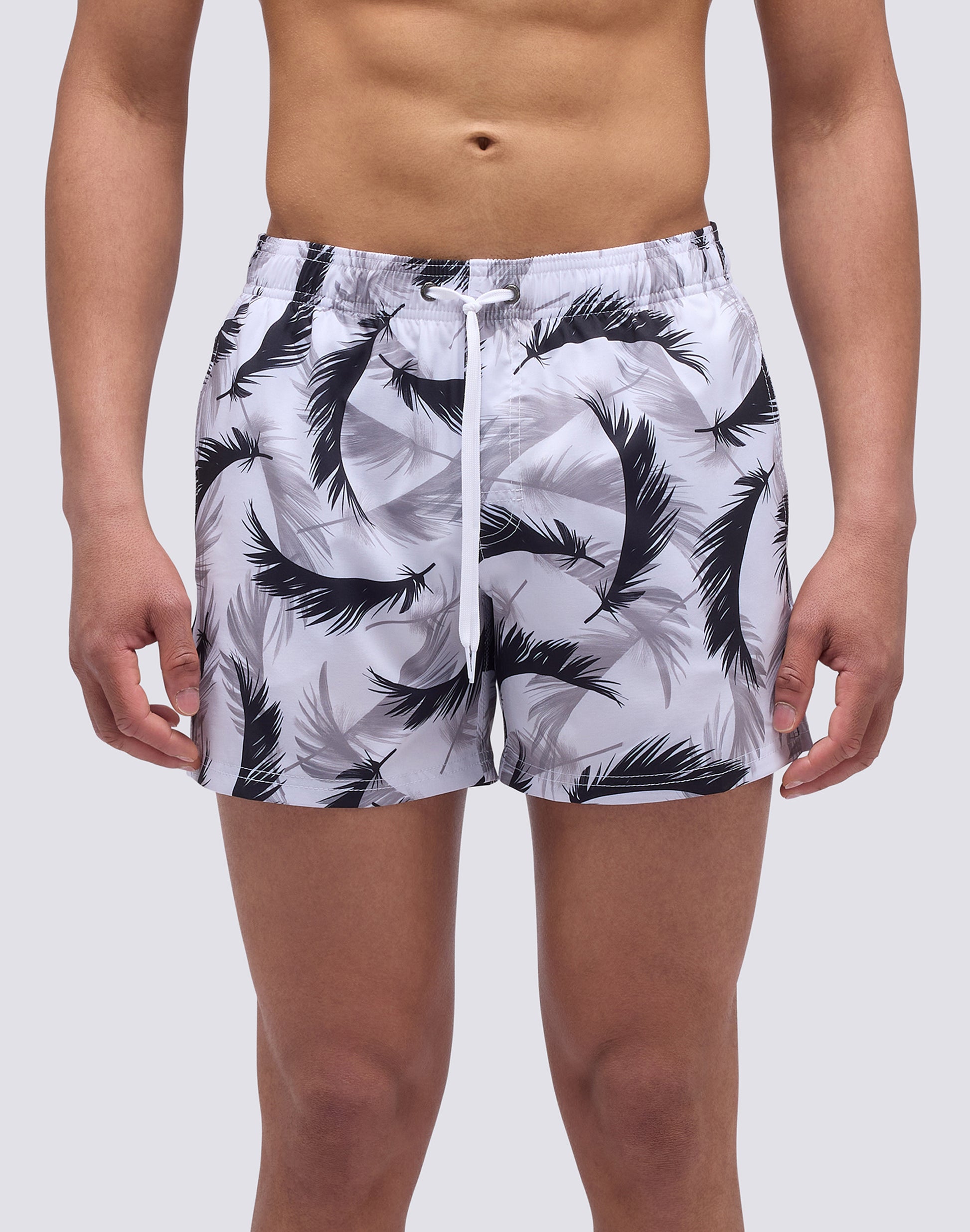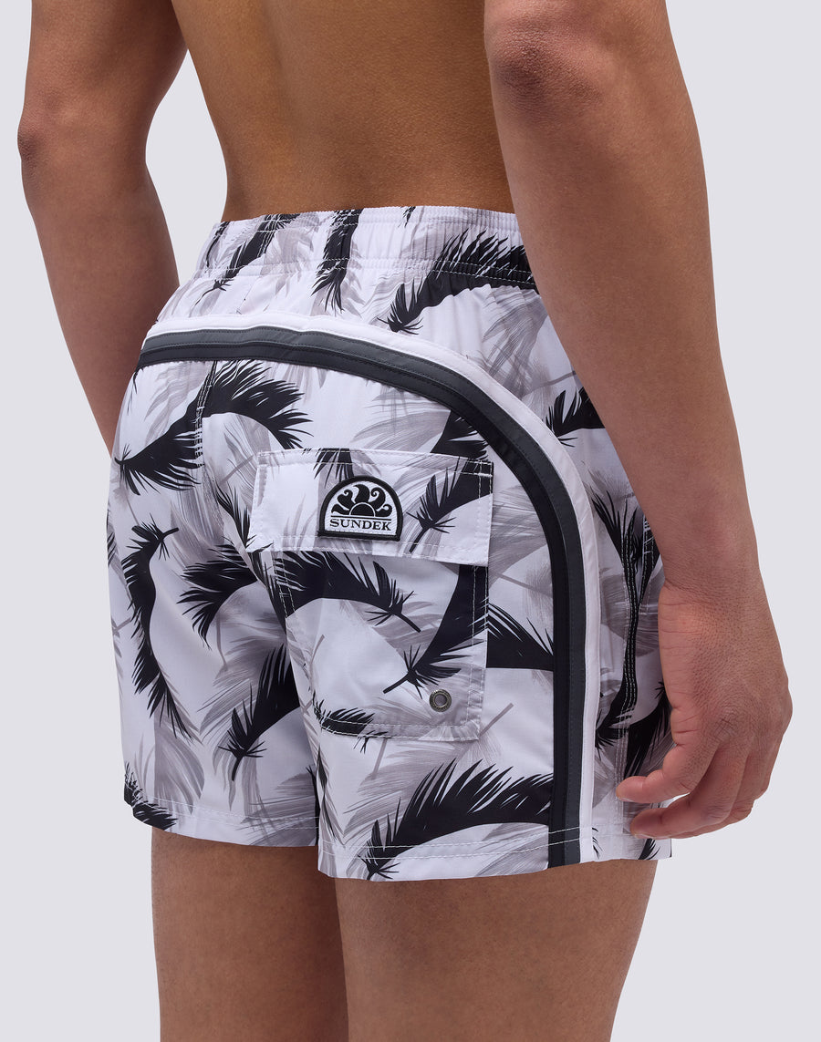 SHORT SWIMSUIT WITH ELASTIC WAIST AND DARFEATHER PRINT