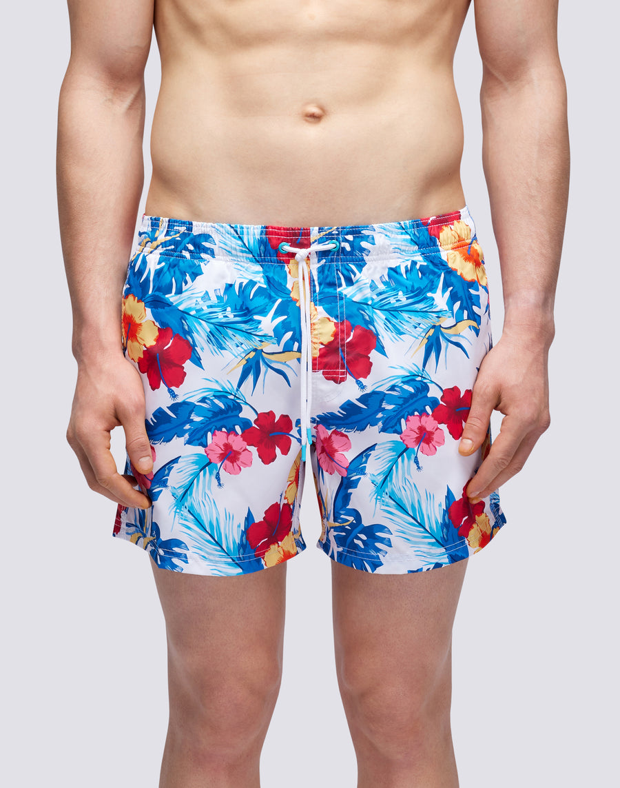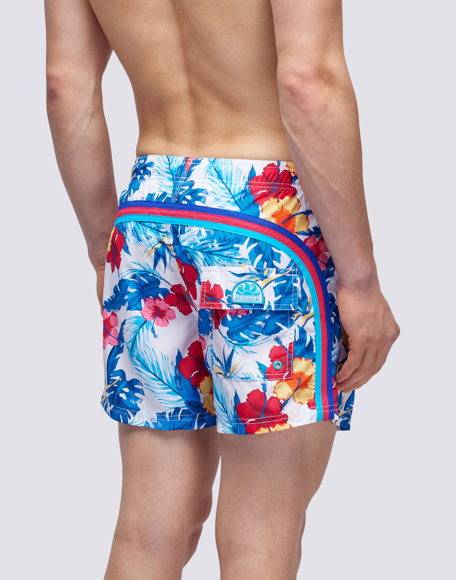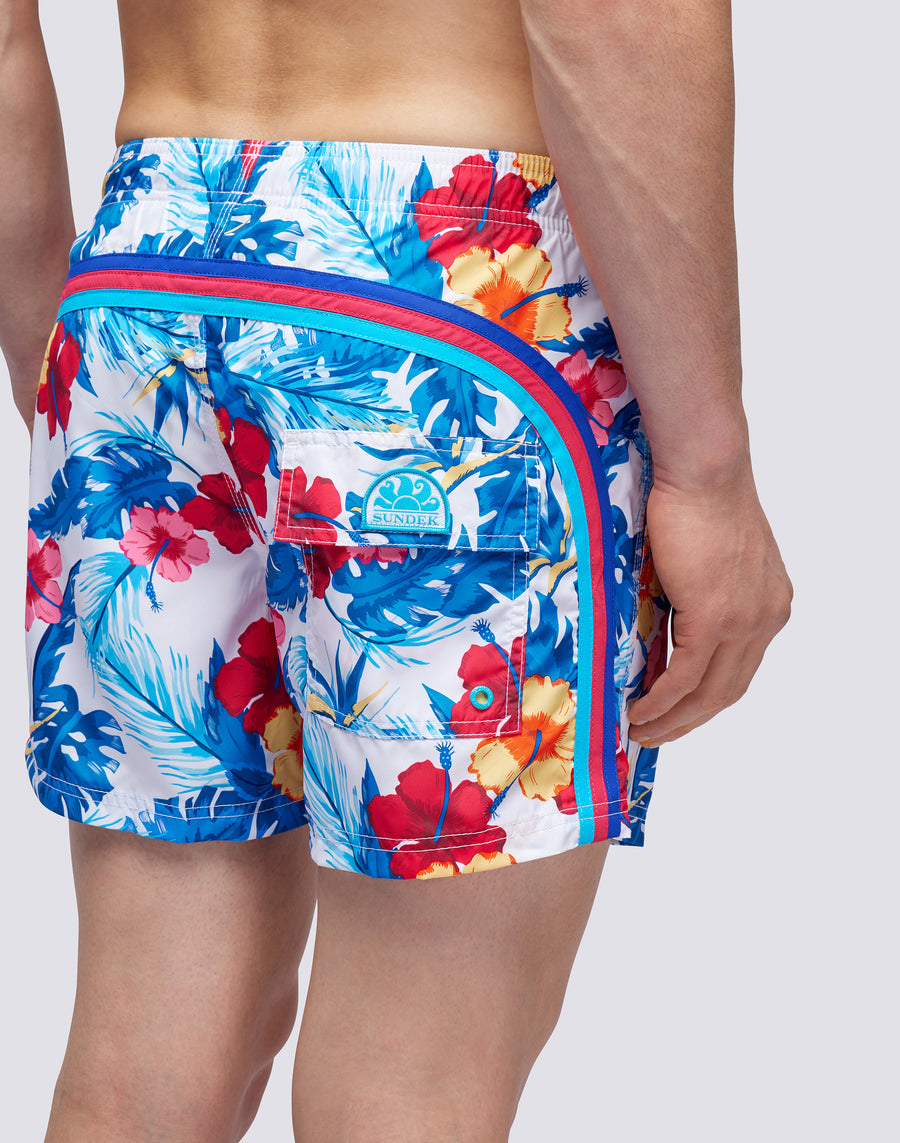 REPREVE® ELASTICATED WAIST SHORT SWIMSHORTS WITH MASTERPIECE PRINT