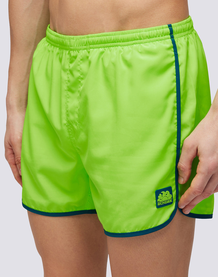 SHORT SWIMSHORTS WITH ELASTIC WAIST AND ROUND SIDE SLITS
