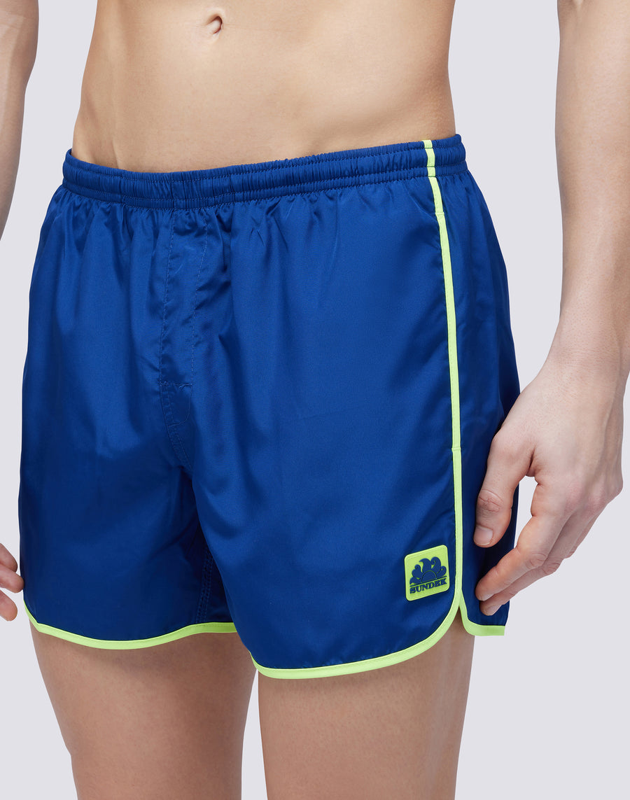 SHORT SWIMSHORTS WITH ELASTIC WAIST AND ROUND SIDE SLITS