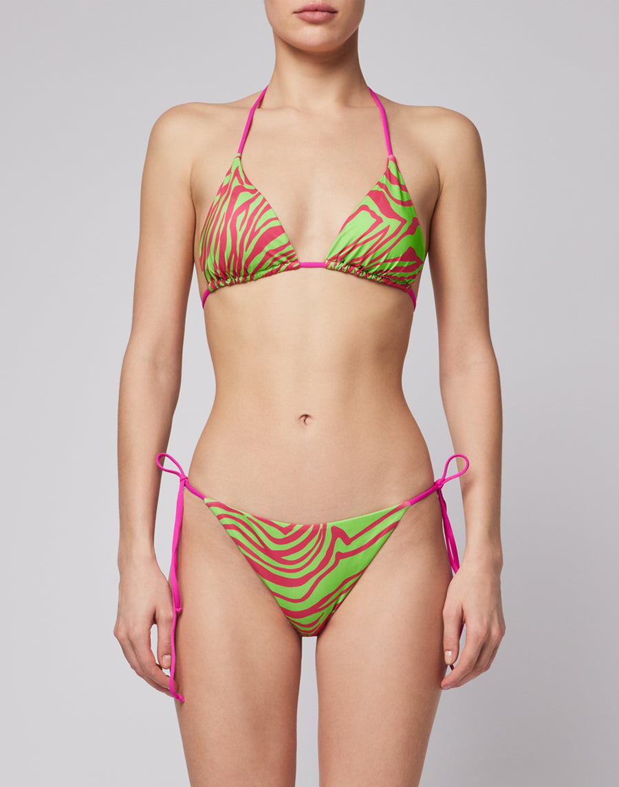 Discover the women's triangle top with zebra print, to match with the coordinated bottom. You can also find it in the children's version, for a trendy and fun look for the whole family!