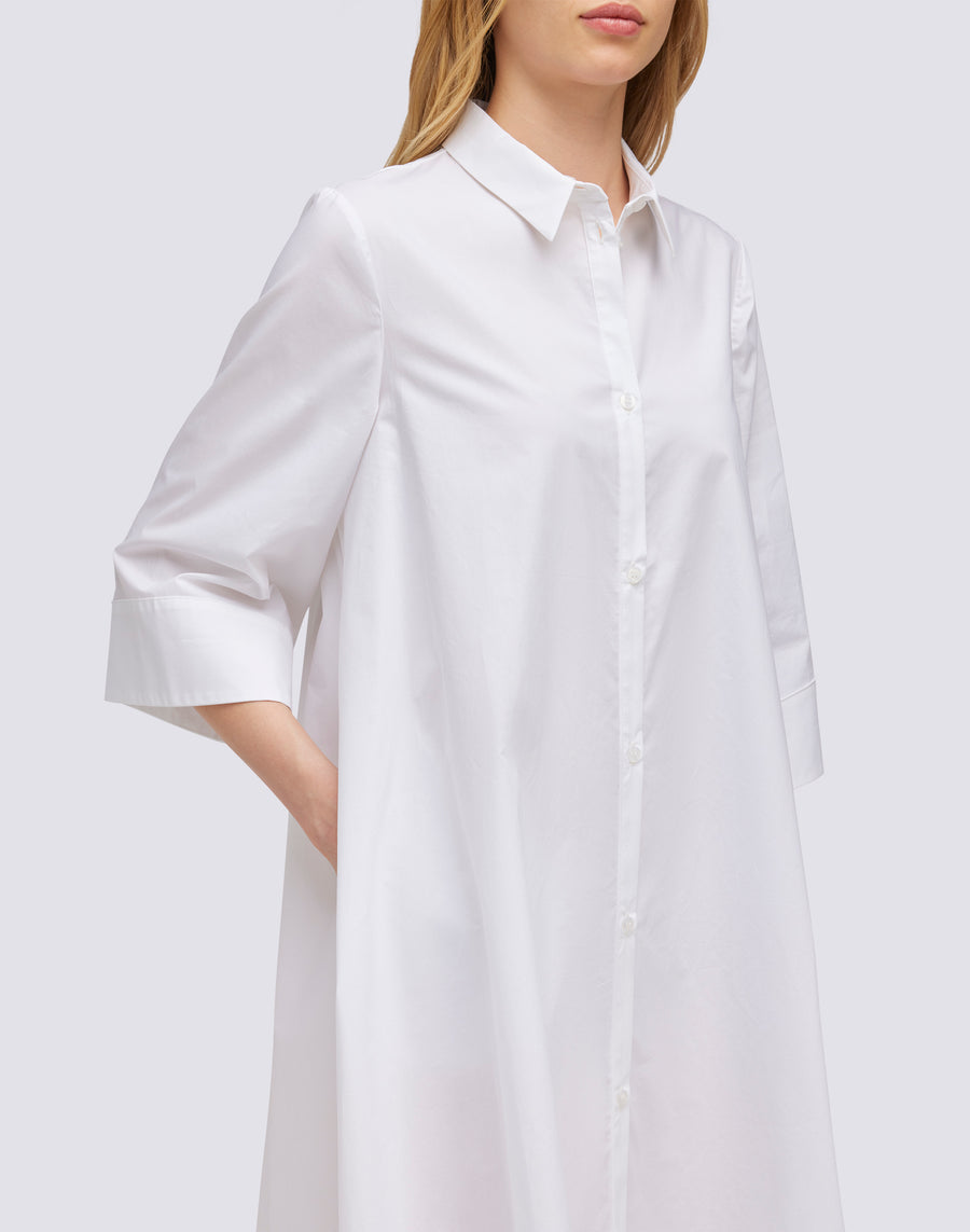 This long poplin cotton shirt is perfect for summer days. Fresh and light, it is ideal for work, free time or an evening out.