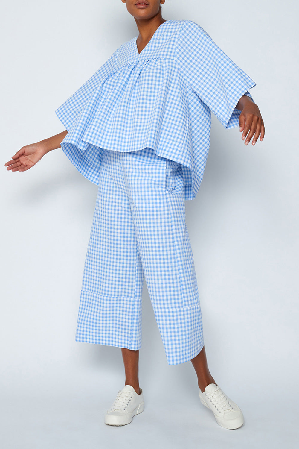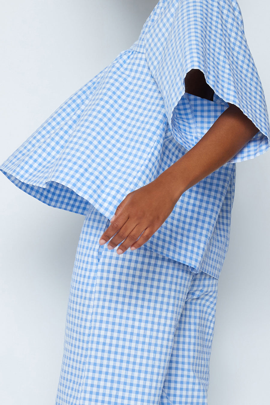 Play with colors and choose this short-sleeved V-neck gingham cotton blouse. With a loose cut and oversized fit, it's ideal to wear in moments of relaxation for a more informal look, combined with an accessory or coordinated shorts.