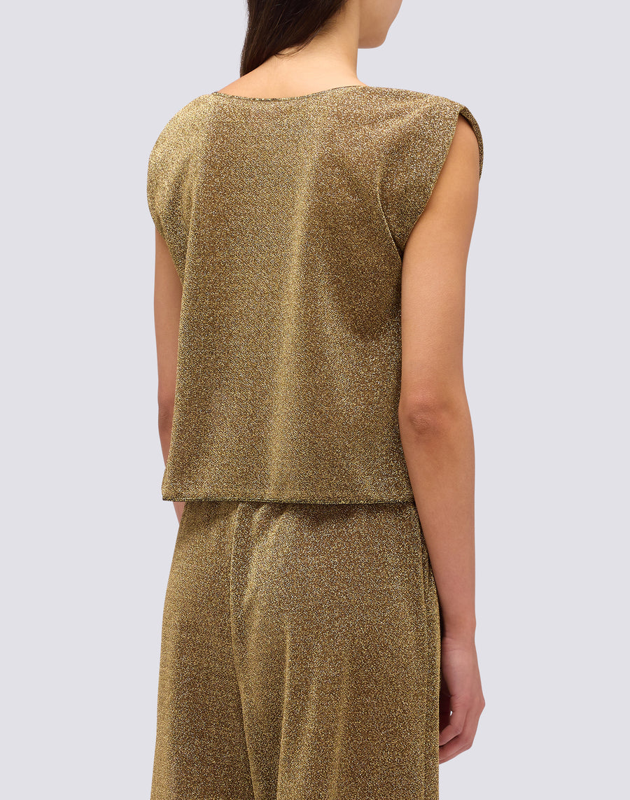 This women's lurex t-shirt is perfect for creating sparkling looks. Pair it with the matching shorts or trousers, it will add a touch of glamour to your style. Made from soft fabric, it is also comfortable to wear all day long.